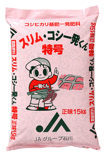 15kg | 窒素成分15%のうち約5.9%が速効性で、約9.1%が穂肥の時期に効き出す窒素です。コシヒカリの生育に応じて肥効をあらわし、基肥1回で必要量が施肥できます。けい酸加里を配合しているため、中間追肥の省力が図れます。主に加賀地区に適しています。 |
